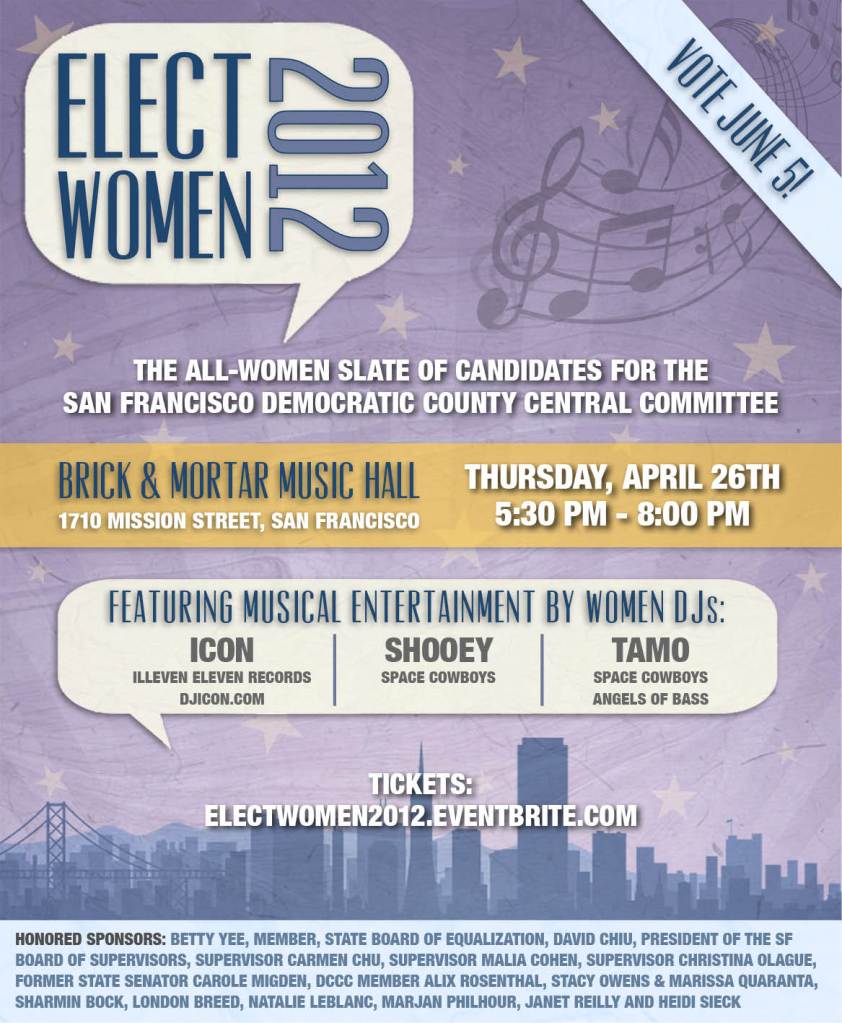 The women candidates for the SF DCCC have banded together to form a powerful slate of our own. We call it “Elect Women 2012,” and it features a broad diversity in age, race, sexual orientation, experience and ideology. It’s a true cross-section of San Francisco.